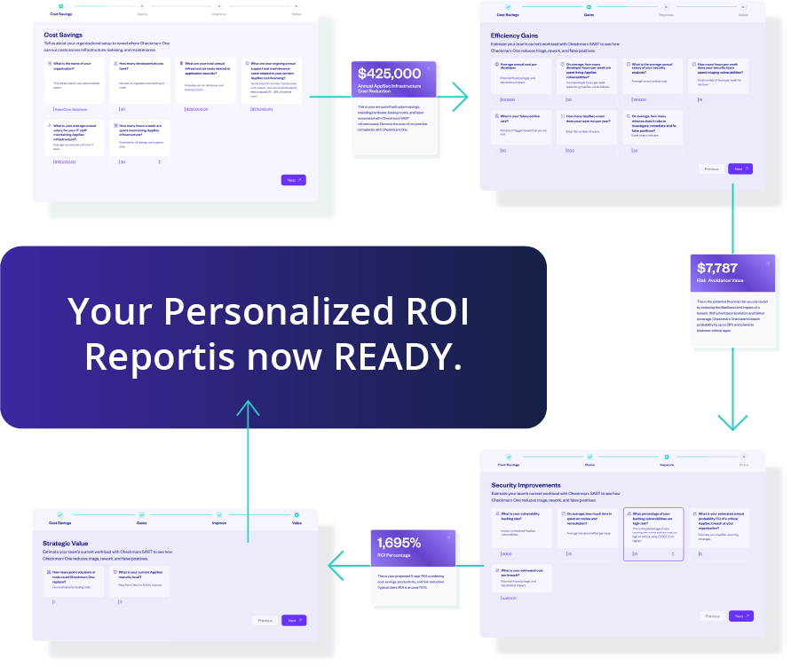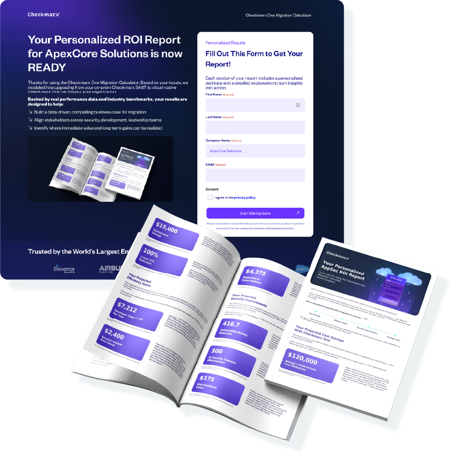 Checkmarx is a global leader in application security, trusted by enterprises to secure their software from the first line of code to deployment in the cloud. The company needed to communicate the financial, productivity, and risk-reduction benefits of migrating from legacy on-premise AppSec systems to the Checkmarx One platform. They sought a tool that could gather real-world business data from prospects, deliver compelling, customized insights, and position Checkmarx as a strategic partner rather than just a vendor. Yeager created an interactive ROI calculator to engage technical decision-makers and show the true value of Checkmarx One.